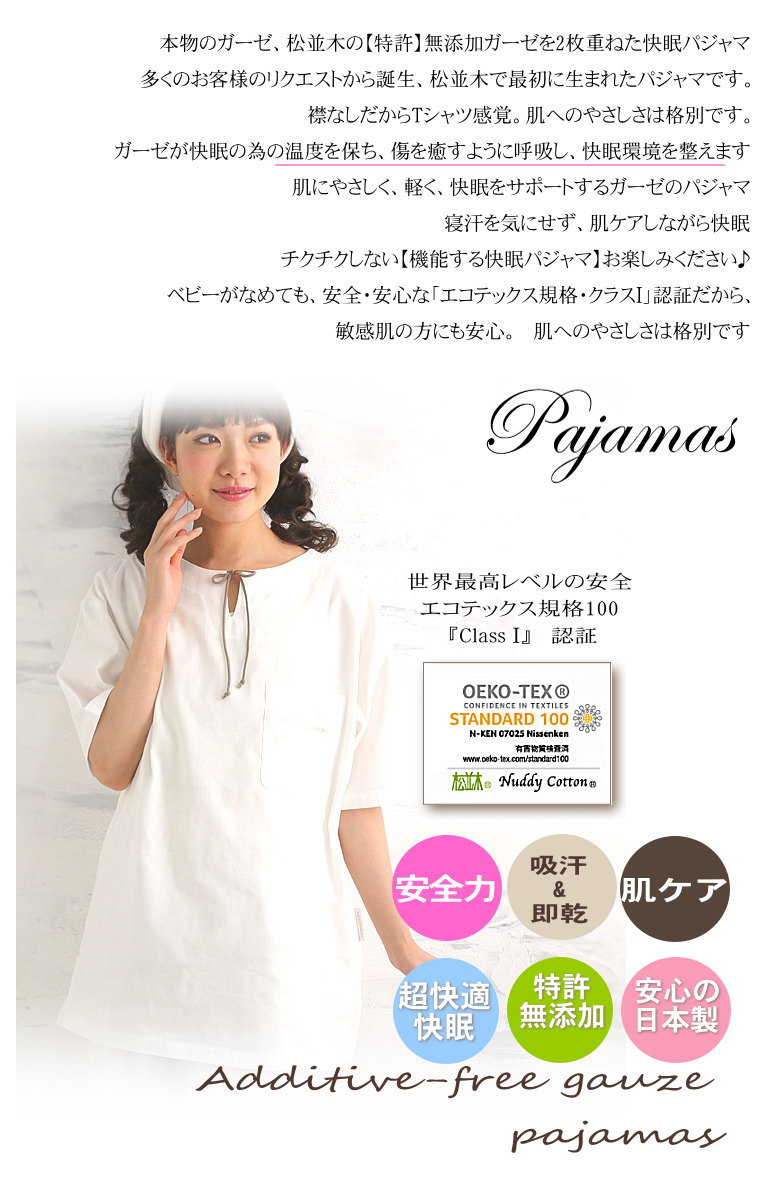 、添加物表示 無添加オフホワイト(添加物なし) ▼肌に優しいパジャマ 【Nuddy Cotton】(R)パジャマのすごい特長 素材の良さは大好評の松並木【Nuddy Cotton】ガーゼケット寝具で好評頂いています!肌に優しい【Nuddy Cotton】(R)ガーゼパジャマは、快適さと凉さを両立。