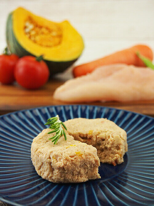 原材料 チキン、チキンレバー、にんじん、かぼちゃ、えんどう豆繊維、ガラクトオリゴ糖、タピオカスターチ、卵白、乳酸カルシウム、トマト、ひまわり油、ビール酵母、リン酸ナトリウム、レシチン、硫酸マグネシウム、魚油、塩化カリウム、昆布、タウリン、グルコン酸亜鉛、クエン酸鉄、キレートセレン、キレートマンガン、ビタミンE、グルコン酸銅、チアミン、ビタミンD3 保証分析値 粗たん白質:13.5%以上 粗脂肪:6.0%以上 粗繊維質:0.5%以下 粗灰分:2%以下 水分:72%以下 代謝カロリー:132kcal/100g 原産国 日本 注意 冷暗所に保管し、開封後は早めに使い切ってください。