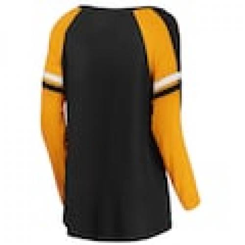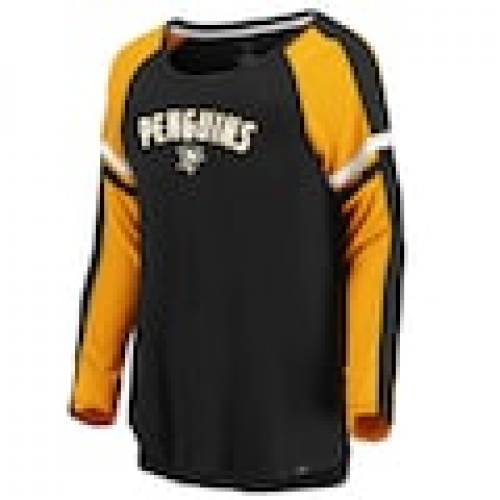 ファナティクス FANATICS BRANDED ピッツバーグ ペンギンズ レディース ラグラン スリーブ 黒色 ブラック ゴールド WOMEN'S 長袖 【 SLEEVE FANATICS BRANDED FLASHY RAGLAN TSHIRT BLACK GOLD 】 レディースファ